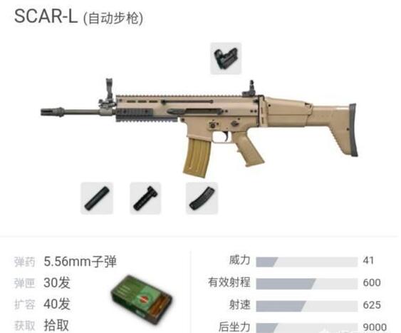 Scar_l这把步枪是游戏中所有步枪中短距离射击时中后座力最小的步枪,同时这把步枪的枪口是向上弹跳,玩家在配件上面可以选择垂直握把,在全自动扫射的时候玩家只需要将鼠标稍微下压,即可将子弹全部倾泻在对方身上,非常适用于新手玩家使用的一把步枪。